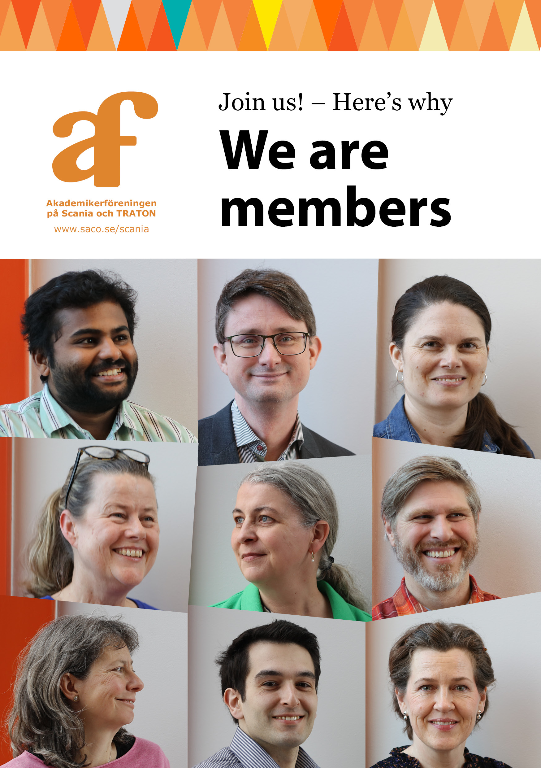 En fackförening är inte vilken organisation som helst. Det är hur vi anställda går samman för att stärka vår röst i dialogen med arbetsgivaren. I foldern "Here's why We are members" har vi samlat anledningar till att vara medlem i facket. Läs den gärna och hitta dina anledningar till medlemskap.
